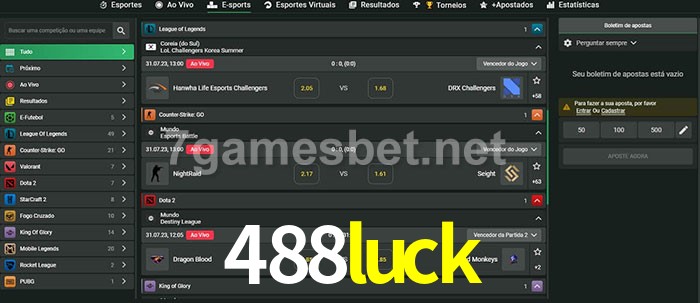A aposta 488luck oferece aos jogadores a experiência mais conveniente de apostas em eSports!